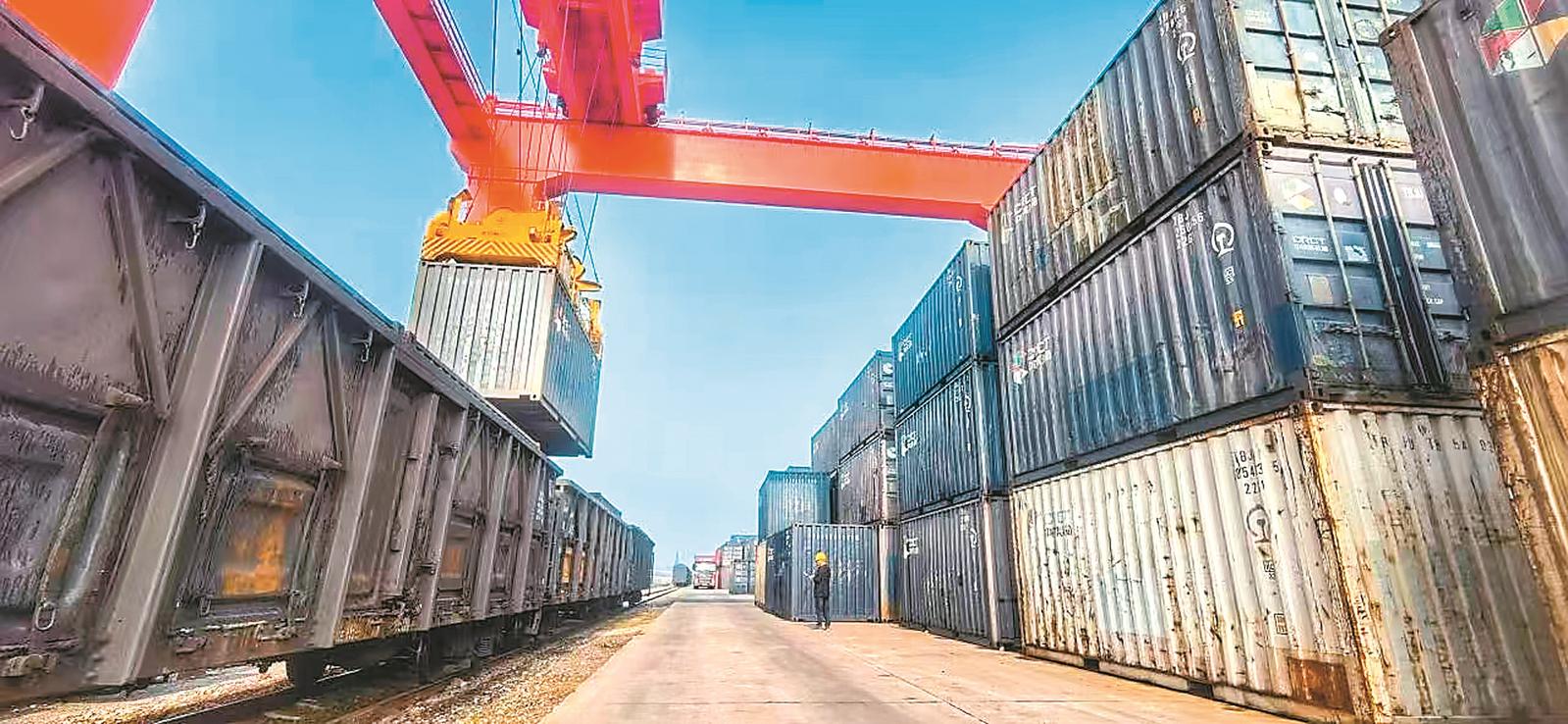 淮南市出口货物通过铁海联运班列,从淮南抵达上海,发往中东地区。记者 柏松 摄