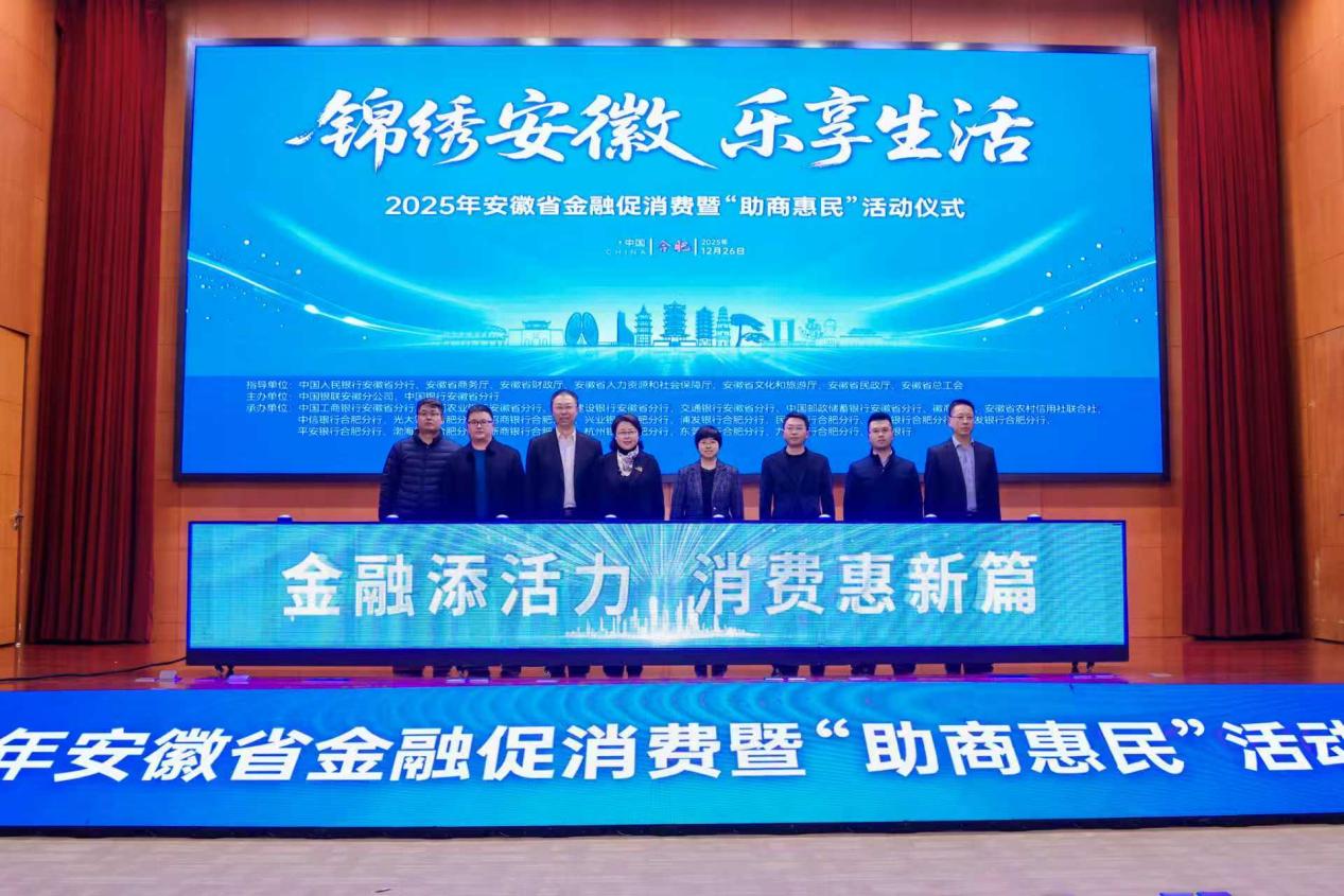12月26日,2025年安徽省金融促消费暨“助商惠民”活动仪式举行。中国人民银行安徽省分行以及安徽省商务厅、省财政厅、省人社会厅、省文旅厅、省民政厅等部门,中国银联安徽分公司及全省23家商业银行齐聚中国银行安徽省分行会议厅,共同擘画“金融添活力,消费惠新篇”的新蓝图。