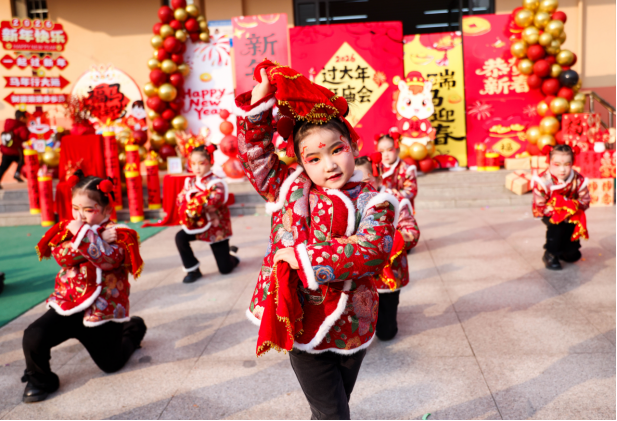12月30日,安徽省淮北市相山区第一幼儿园相王府邸园开展“民俗赶大集迎新年”主题活动,通过参加歌舞,赶大集、套圈、品尝小吃等活动,红红火火迎元旦。新华网发(王文 摄)