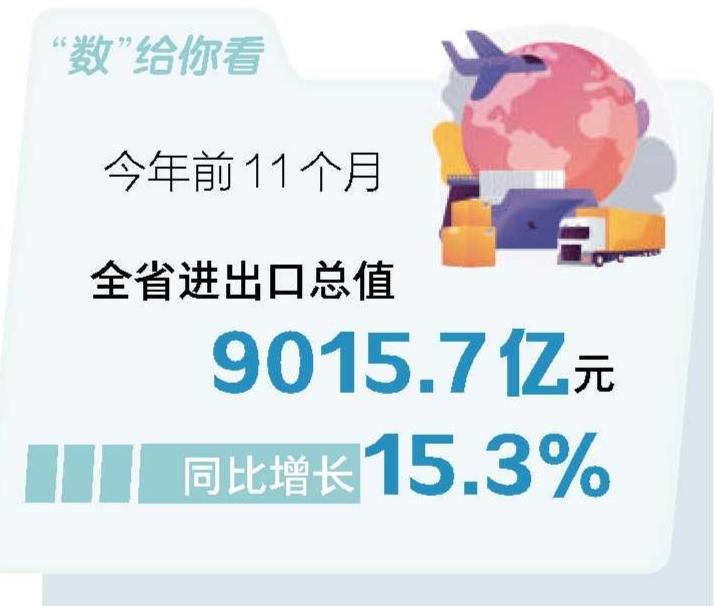 一季度,全省货物贸易进出口总值2153.3亿元、上半年进出口总值4585.4亿元、前三季度进出口总值7262.5亿元、前11个月进出口总值超9000亿元……数据上扬曲线的背后,是汗水,是智慧,更是一种执着。