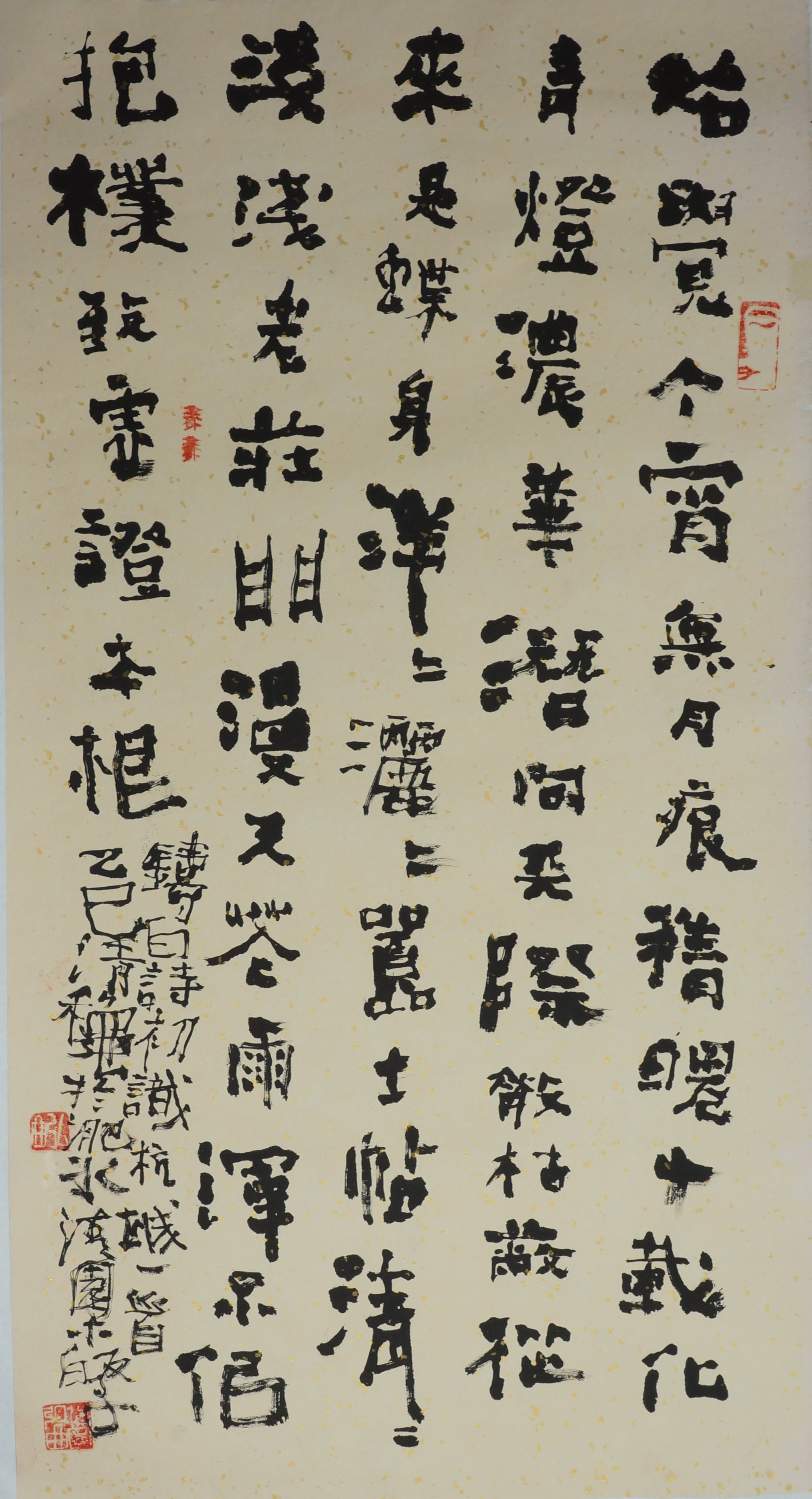 早年弘曲将白石用笔奉为师法,从中领悟用笔之道。隶书对常人来说,极易陷入隶书之趣味,所谓隶书之道,当书家陷得很深显得很舒服时,有时却要反其道而行之,就像文章之道,不仅在于舒缓,而是在于破字断句之间,弘曲皆在其中,弘曲是书道领域破字断句执着的践行者。