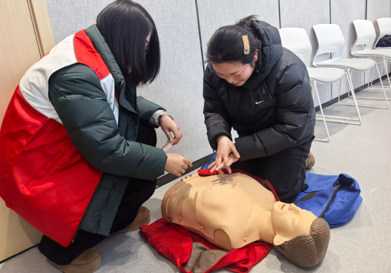 实操演练环节成为培训的亮点。参训人员分组轮流上阵,在志愿者的手把手指导下,逐一进行心肺复苏与海姆立克急救法实践。从掌根按压的精准定位到冲击力度的控制,从人工呼吸的气道开放到异物梗阻的应急处置,志愿者对每位学员的动作细节进行纠正,确保“学一个、会一个”。不少工作人员表示,现在亲手完成整套操作,不仅掌握了技能,更增强了应对突发事件的底气。