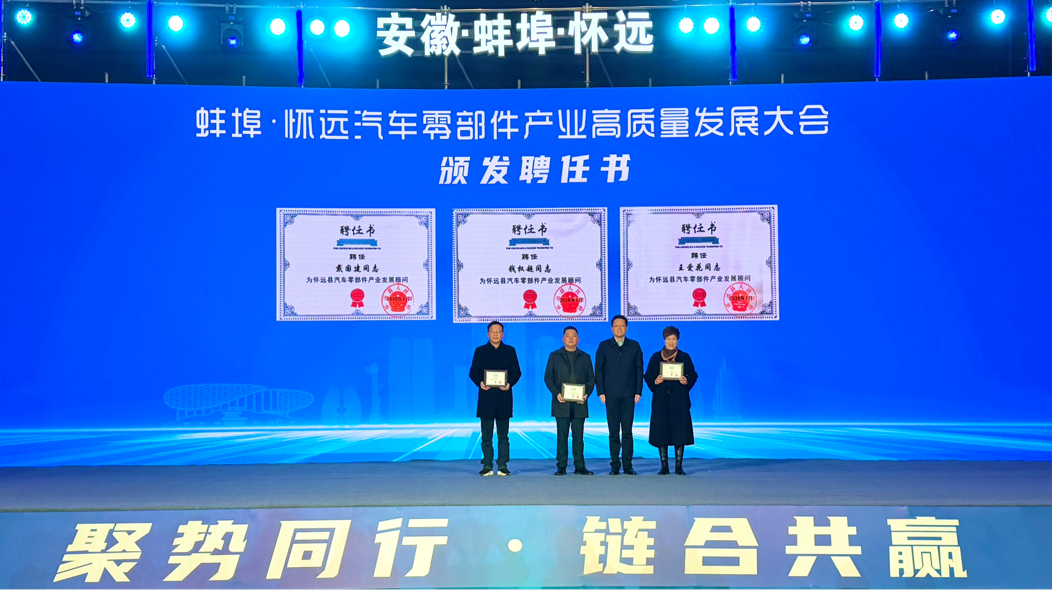 1月10日,蚌埠·怀远汽车零部件产业高质量发展大会在怀远县举行。本次大会以“聚势同行·链合共赢”为主题,由怀远县人民政府与安徽省汽车行业协会联合主办。通过成果展示、战略签约、产需对接与前沿研讨,共同擘画怀远汽车零部件产业集群的发展蓝图。