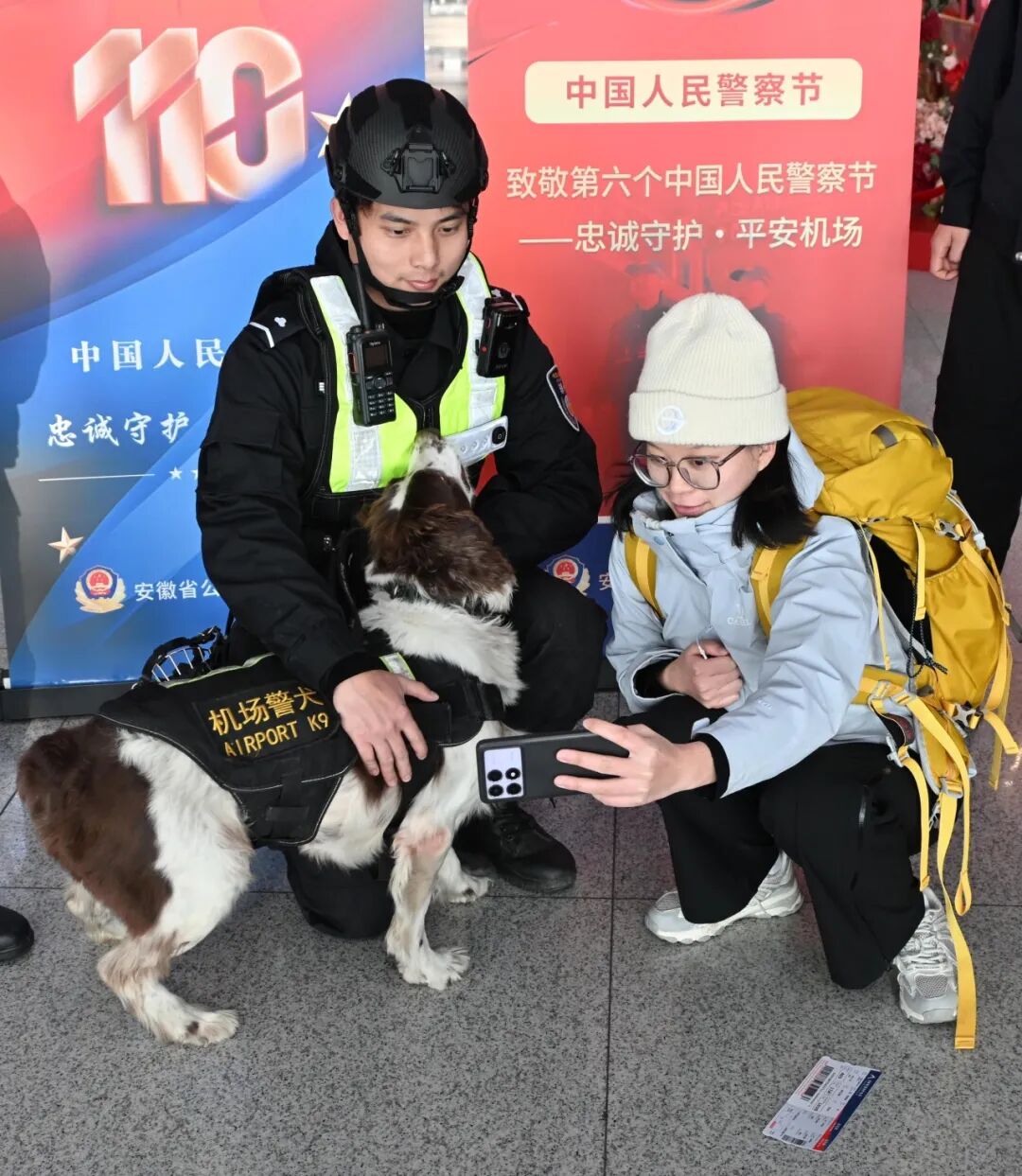 1月9日,安徽省公安厅机场公安局在航站楼组织开展“忠诚守护 平安机场”为主题的“110警察节”宣传活动。