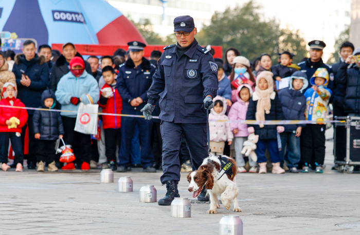 1月10日,安徽省黄山市屯溪区,警犬搜捕工作展示。