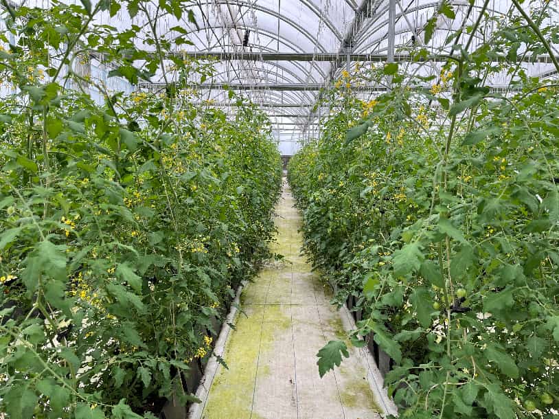 园区内,科技感十足的现代农业场景令人印象深刻。玻璃温室、西班牙日光大棚与鱼菜共养水塘构建起高效生产体系。其中,园区采用的荷兰半封闭温室技术,以其独特的气候室正压风机设计,能有效降温、除湿、防虫,为番茄生长提供了绝佳环境,实现了番茄种植的“科技化+标准化”,显著提升了土地产出效益。