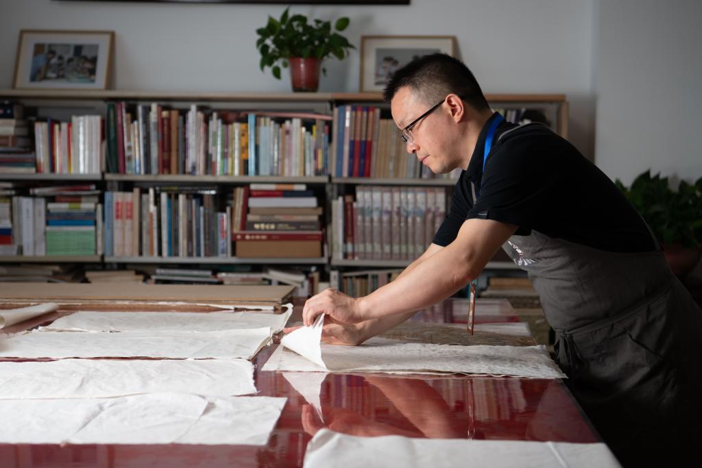 2025年6月24日,古籍修复师金鑫在拼碎片。