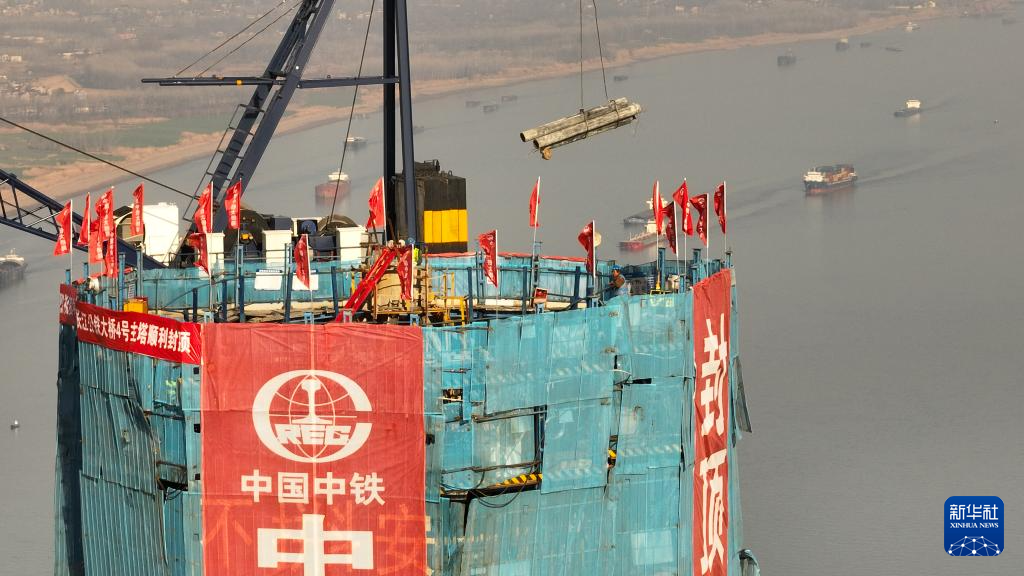 1月15日,在安徽省池州市境内,由池州建投集团投资、皖赣铁路安徽公司建设、中铁大桥局承建的池州长江公铁大桥南主塔顺利完成封顶。该主塔高272.7米,相当于90层楼的高度。这也是大桥两座主塔中首个封顶的主塔。池州长江公铁大桥连接池州市贵池区和铜陵市枞阳县,全长3.1公里,其中主桥长1768米,为三主桁三索面双层钢桁梁斜拉桥。