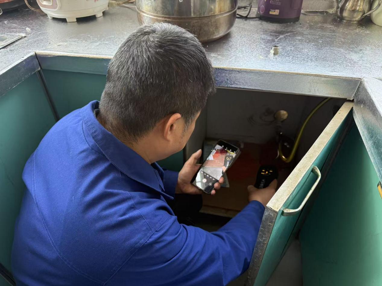 吴雄飞正在用户家开展隐患排查(合燃华润燃气供图)