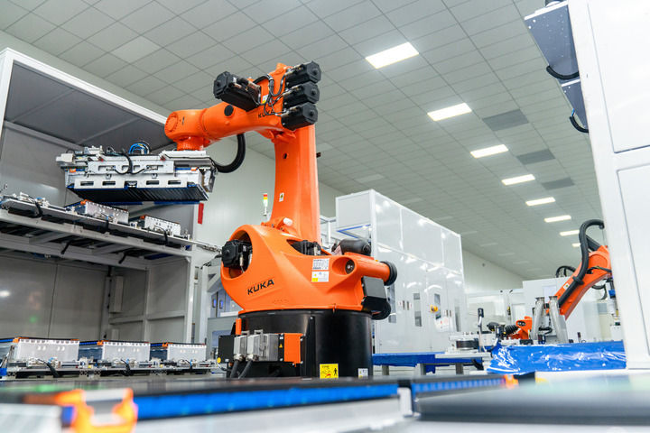 合肥国轩高科动力能源有限公司的电池包生产线(2023年3月24日摄)。受访者供图