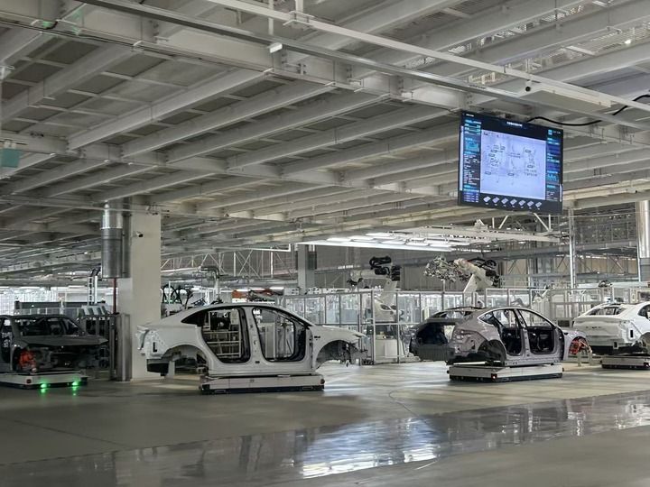 安徽合肥市新桥智能电动汽车产业园蔚来第二工厂内拍摄的新能源汽车生产线。新华社记者吴慧珺 摄