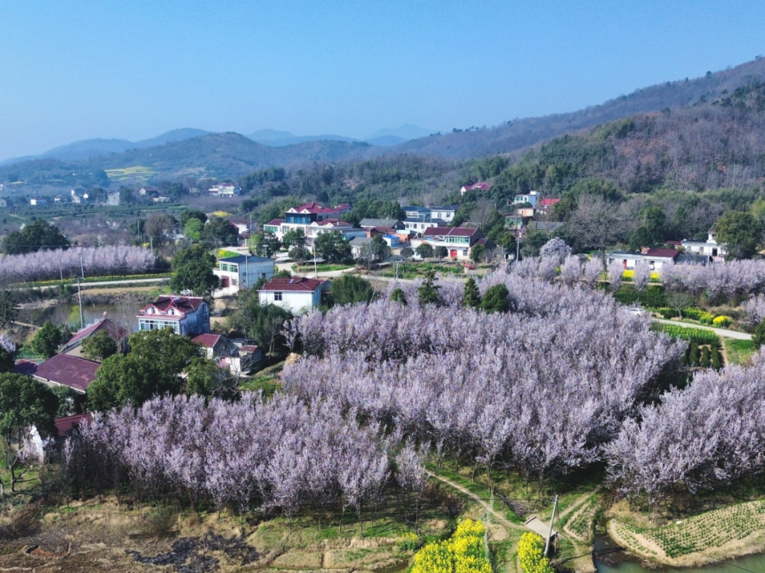 近日,合肥市庐江县柯坦镇分水村迎来了美丽的春日盛景。紫叶李花、油菜花竞相绽放,与周边的民居相映成趣,勾勒出一幅生态秀美、宜居宜业的春日乡村新画卷。
