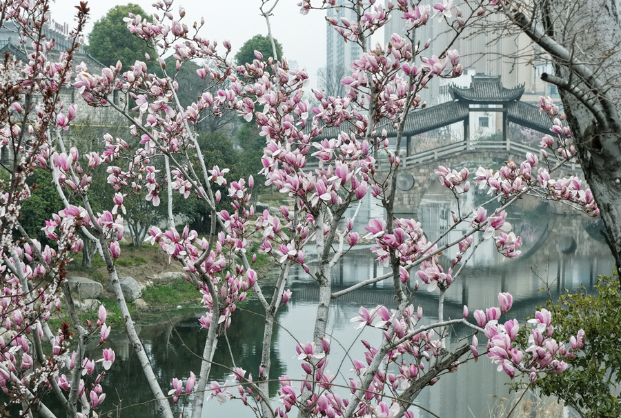 春日时节,安徽省阜阳市颍上县玉兰花迎来盛花期,白玉兰、紫玉兰竞相绽放,洁白如雪、淡雅似霞,满树芬芳,与碧水、古街、绿道相映成趣,勾勒出一幅春日画卷。(方文青)