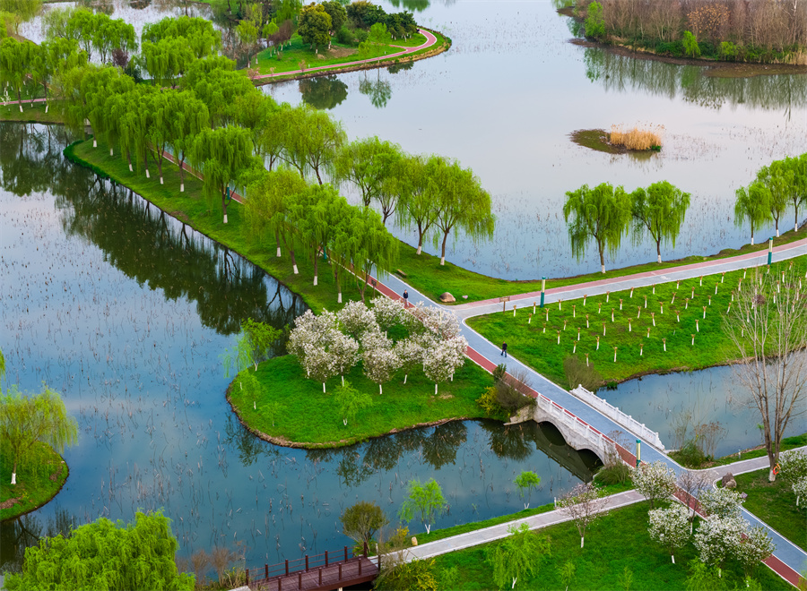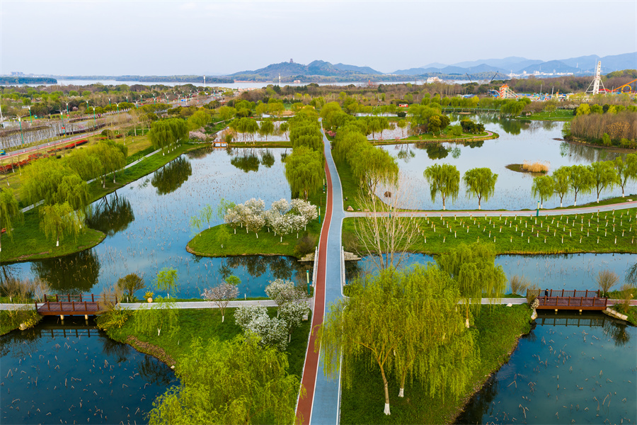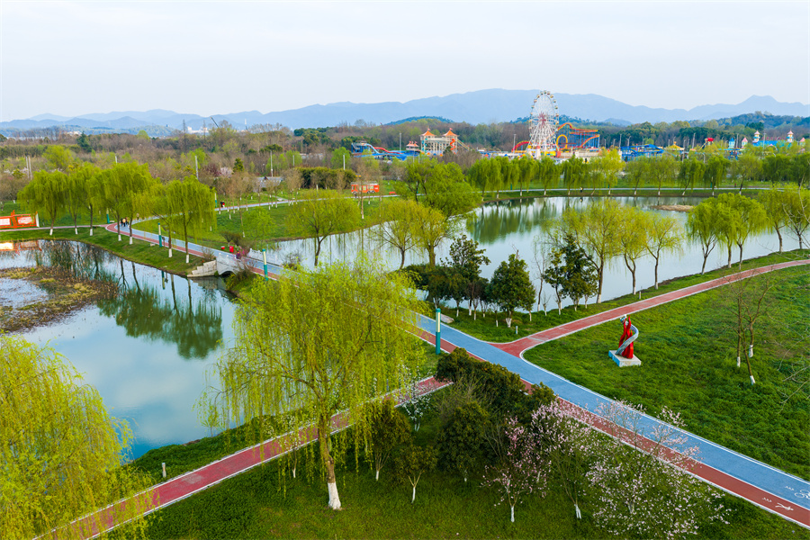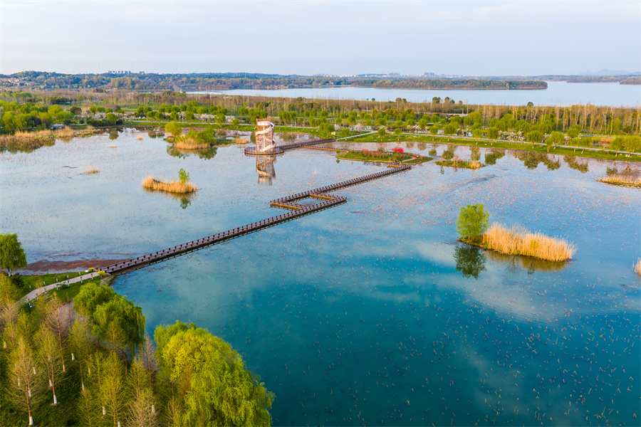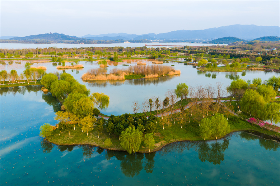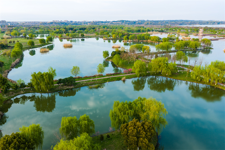 近日,安徽省池州市平天湖国家湿地公园春意盎然,碧水荡漾、草木吐绿,市民游客漫步湖畔,尽享春日生态美景。当地持续推进湿地保护修复,水域生态持续向好,绘就人与自然和谐共生的美丽画卷。(饶治国)