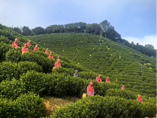 目前,宁国市茶园面积达8.4万亩,已建成国家级茶叶标准园1个、“三化”示范茶园11个、“宣城黄金芽”标准化生产基地3个。全市从事茶叶生产的经营主体有500余家,从业人员约4.2万人,茶产业已成为带动山区农民增收致富的“绿色银行”。