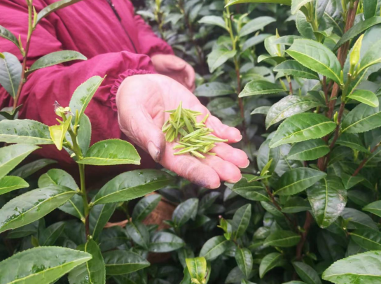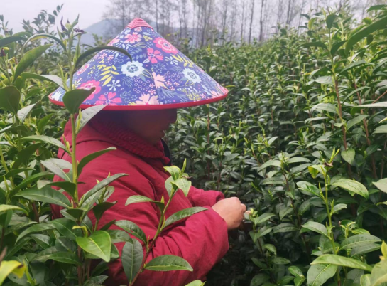 “今年春茶采摘比去年提前约一周,雨水充沛,管护到位,茶叶长势格外喜人,预计一天收入1000元左右。”满生家庭农场负责人笑着说道。