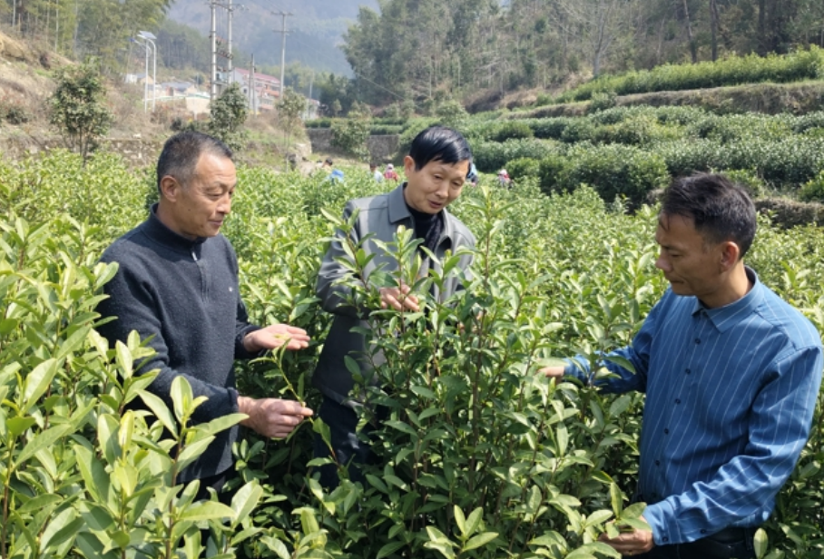技术支撑,高质高效。“天华谷尖茶草的采摘标准是一芽一叶初展。采摘时要按标准采,要求提手采,不允许捋采、抓采和指甲采。”茶叶专家、农业技术推广研究员汪大根在茶园里,就芽叶完整以及嫩度、匀度、净度的要求和采摘方法对采茶工人进行耐心的现场指导。在加工车间,汪大根和市级“天华谷尖”非遗传承人程勇分别现场解说并演示“天华谷尖”“天华云雾”的手工杀青、理条的制作方法,分享不同阶段炒锅温度控制经验,手把手教工人掌握技术要点、提高名优茶制作技艺。