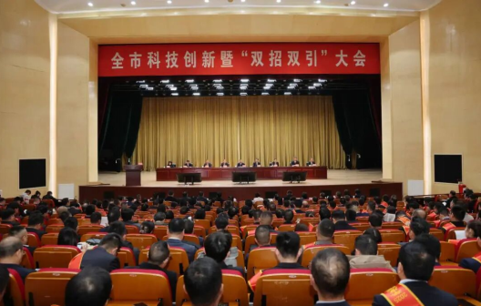 2月25日上午,全市科技创新暨“双招双引”大会在市政务中心召开。(摄影 张越)