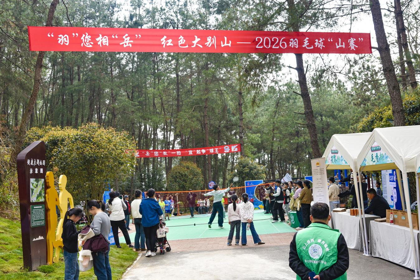 4月1日,全民健身系列活动(皖美运动汇)——“羽”您相“岳”红色大别山・2026羽毛球“山赛”在安徽省安庆市岳西县花果山公园开赛。