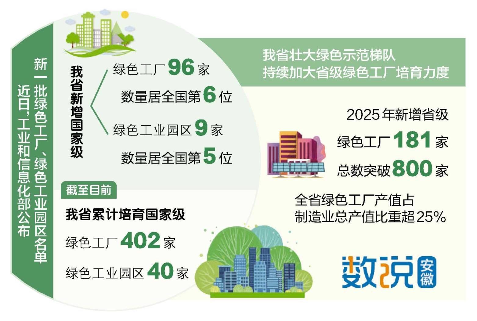 近日,工业和信息化部公布新一批绿色工厂、绿色工业园区名单,我省新增国家级绿色工厂96家、绿色工业园区9家,数量分别居全国第6位和第5位。截至目前,我省累计培育国家级绿色工厂402家、绿色工业园区40家,数量均居全国前列,绿色制造示范创建成效显著。