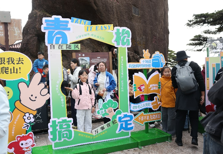此外,为让孩子们沉浸式感受跟着课本走读黄山的研学魅力,黄山旅游在玉屏楼广场和雲麓北海广场精心设置了语文书封面、“青松搞定”等创意打卡装置,成为游客们争相合影的“网红点位”。