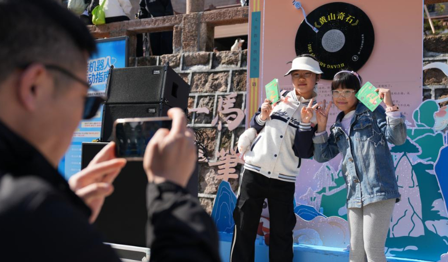 游客在打卡点拍照 (图片来源:黄山旅游)