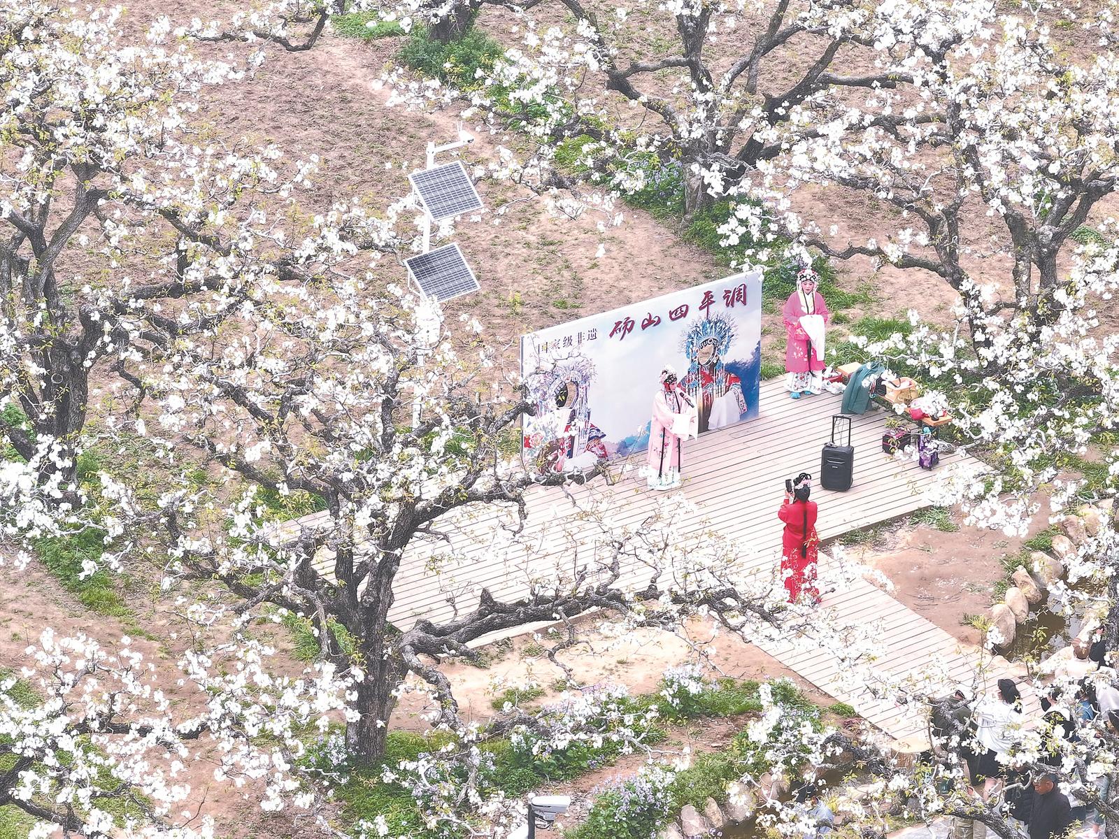 4月2日非遗代表性传承人在梨园表演国家级非遗砀山四平调。 记者 王兰兰 李博 实习生 俞志升 摄