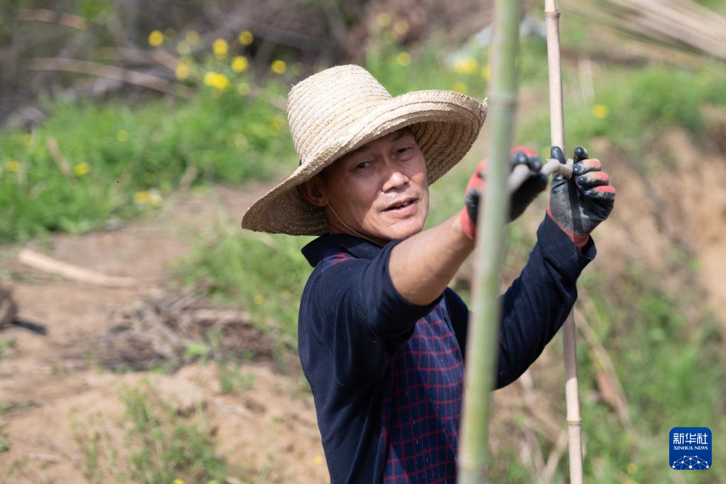 4月5日,在安徽省铜陵市郊区大通镇大院村,农民给种下的铜陵白姜搭建姜棚。新华社记者 张端 摄