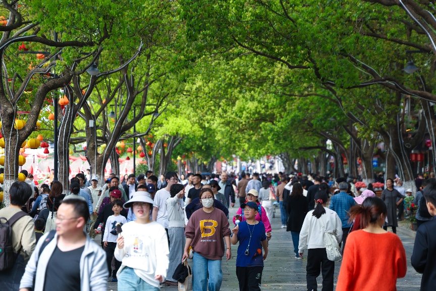 户外区域的欢乐氛围同样拉满。专业团队带来的风筝表演精彩纷呈,各式花式风筝在空中舒展身姿、灵动飞舞,引得现场观众连连叫好。景区还贴心设置风筝教学与DIY环节,大人小孩齐上阵,画画、组装、放风筝,在欢声笑语中度过温馨的亲子时光。与此同时,婉转悠扬的民乐表演轮番上演,琴声、笛声伴着徐徐湖风回荡在景区各处,氛围感直接拉满,让漫步景区的游客倍感惬意。