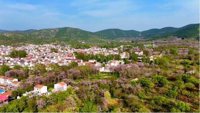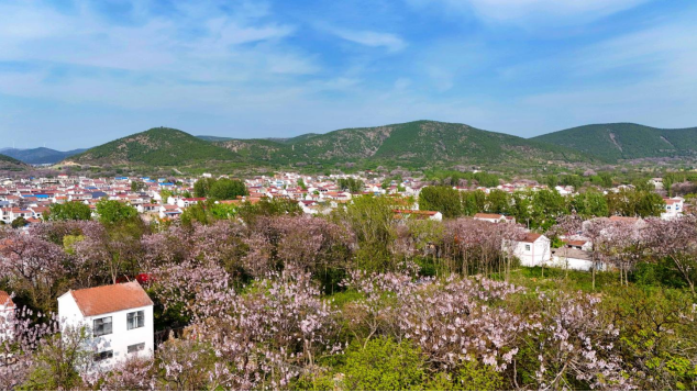 近日,安徽省淮北市杜集区矿山集街道南山村迎来梧桐盛花期。连绵青山环抱村庄,白墙红顶的民居错落有致,成片梧桐花缀满枝头,勾勒出生态宜居的和美乡村新画卷。