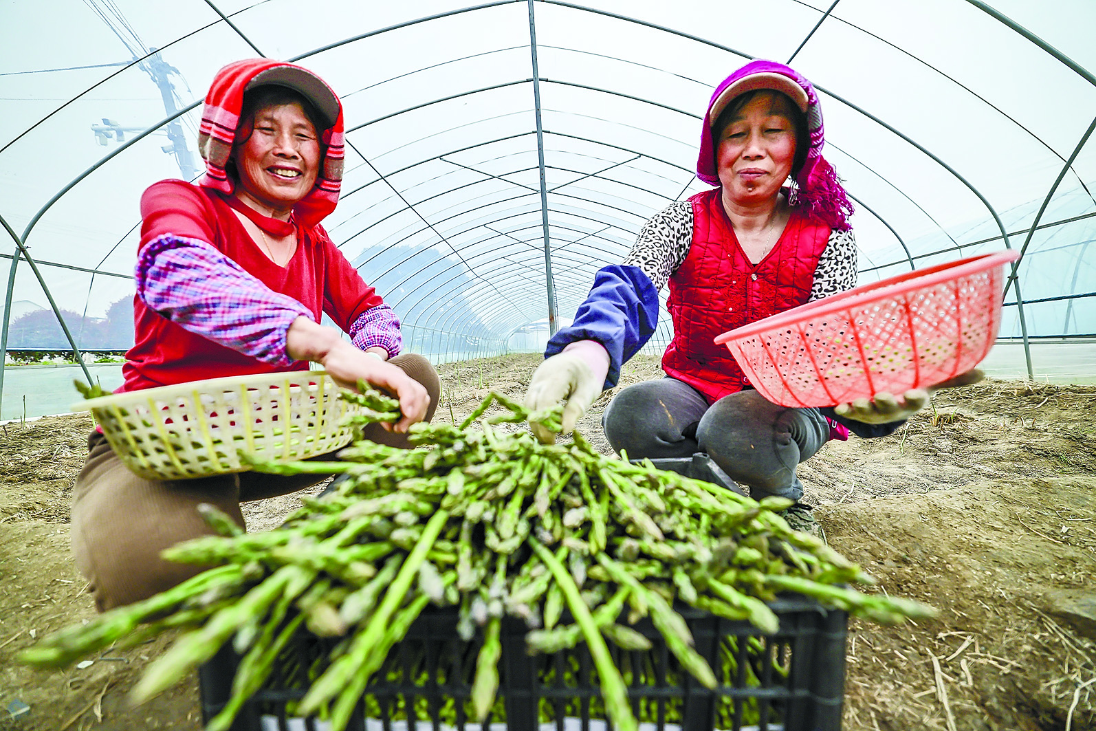 村民们抢抓时节采摘芦笋。特约摄影 王文生 摄