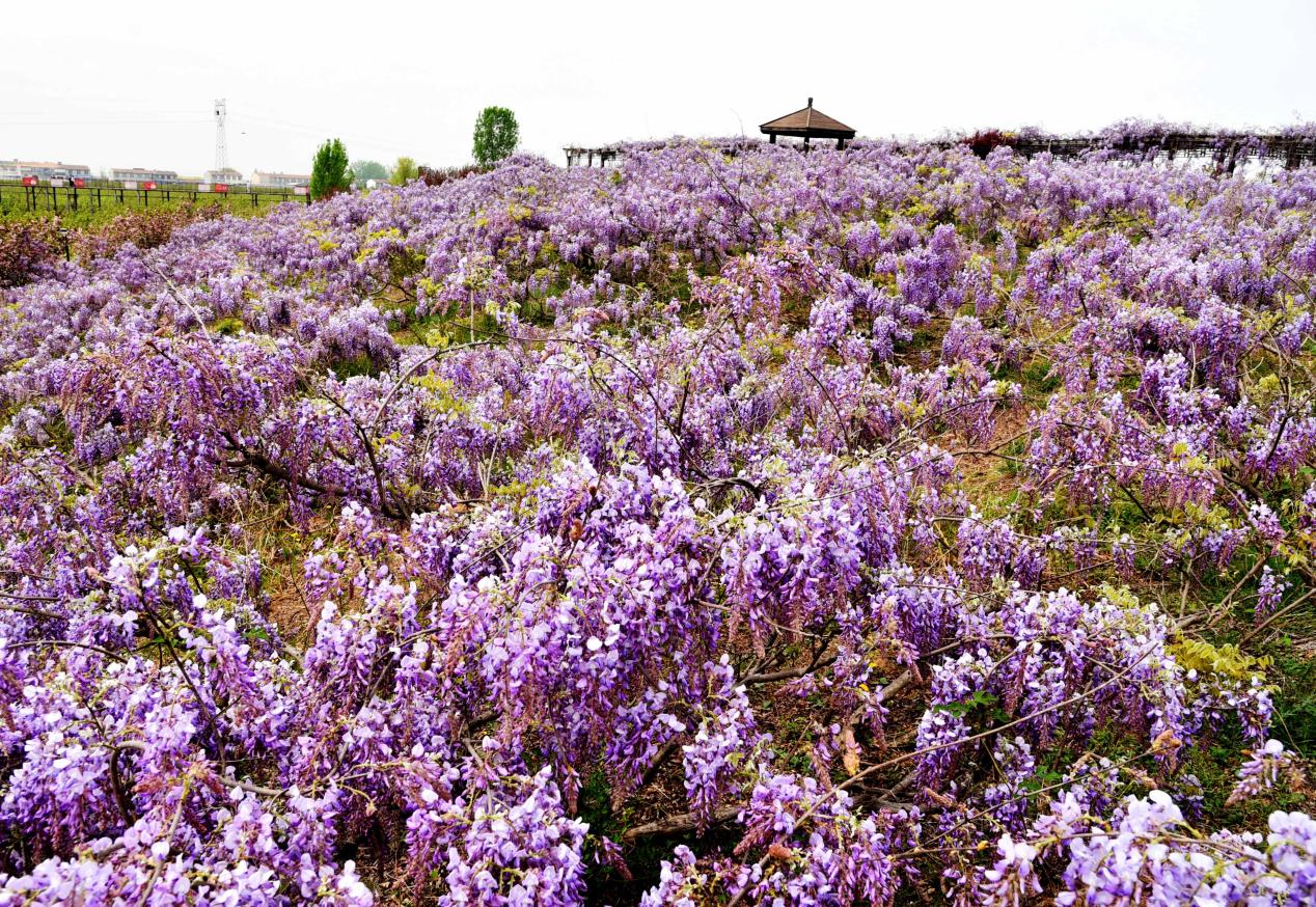 连日来,“世界梨都”砀山县良梨镇葛花滩景区内,近百亩百年野生紫藤(葛花)竞相绽放,串串紫花如瀑倾泻,紫色花海与原生态田园风光交相辉映,吸引了众多游客前来打卡赏景、体验自采乐趣。