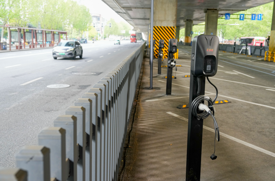 桥下停车场配备了充电桩。