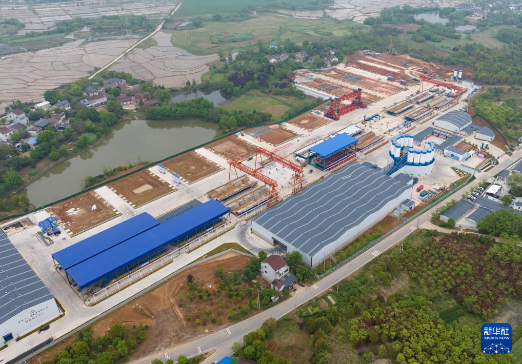 这是4月16日拍摄的中铁十一局乐桥镇制梁场(无人机照片)。
