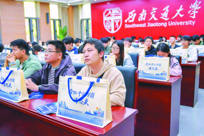 当然,合肥的推介不仅有全方位的城市发展生态,还有在城市“拔节生长”的青年人的“现身说法”。西南交通大学优秀校友代表、合肥市轨道集团总工办轨道规划处处长张浩,第一次以“推介人”身份返回母校,分享自己在合肥轨道集团从运营调度、新线筹备到客运管理、轨道规划的十年成长经历,感慨:“是合肥给了我扎根的信心,我的每一步成长都离不开合肥‘尊重人才、培养人才’的土壤。”