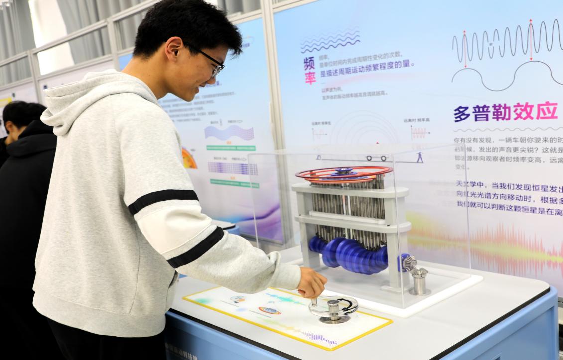 在志愿者的悉心引导下,同学们纷纷动手操作、亲身体验,主动提问、踊跃交流探讨。大家围在各类展品前认真观察、反复尝试,在“玩中学、学中思”的氛围中解锁科学奥秘,感受科技带来的乐趣与独特魅力。