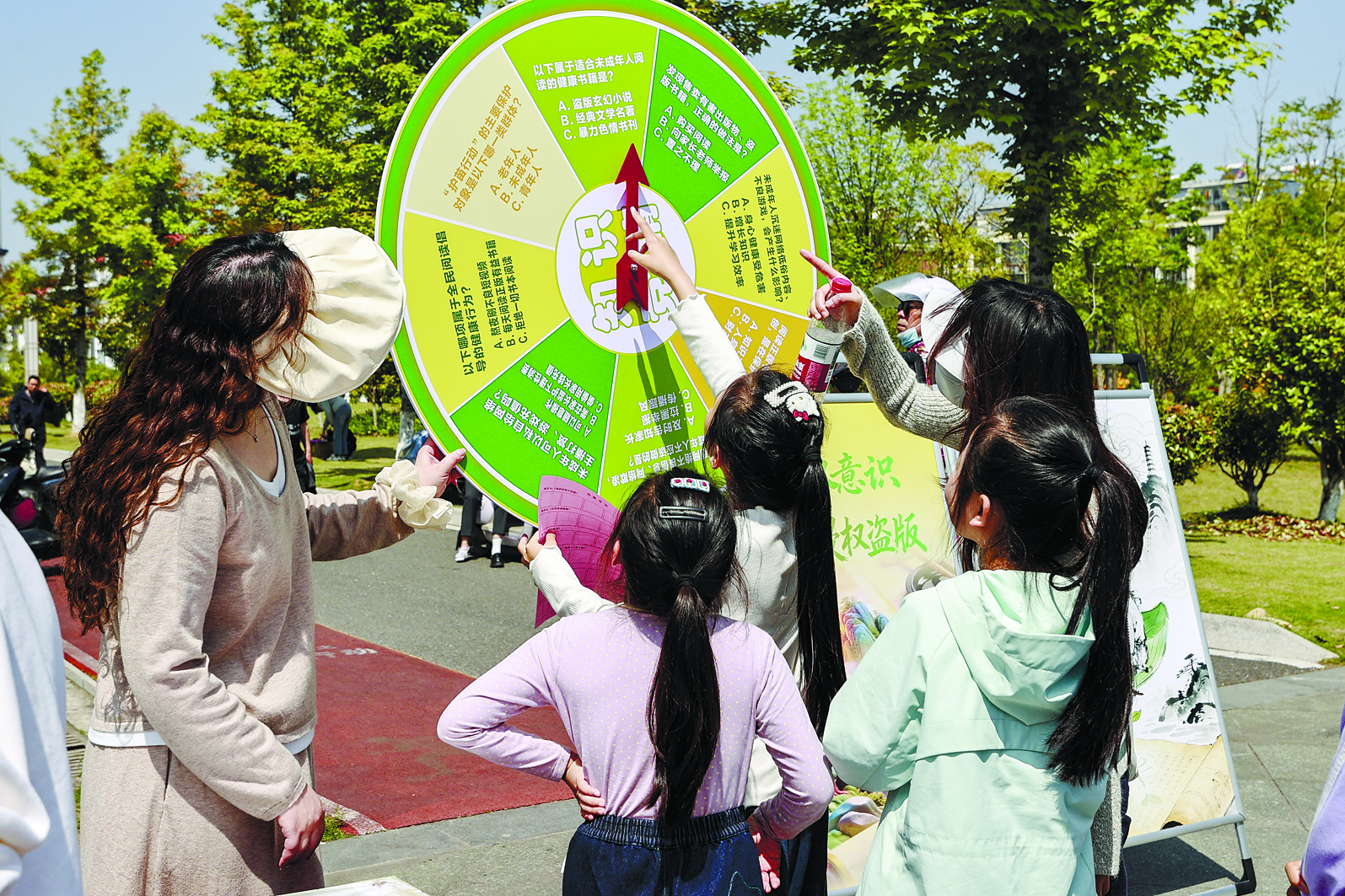 “以前读书日就是摆摆书摊,今年能带孩子边玩边学党史、学红色知识,这个形式挺新鲜!”刚陪孩子玩完“你画我猜”的市民张女士忍不住点赞。