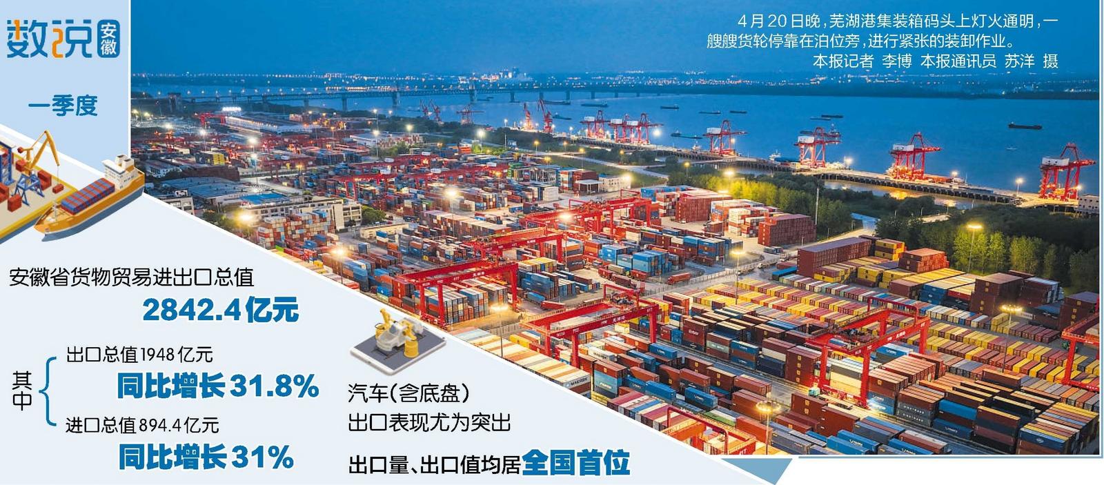 传统伙伴与新兴市场两翼齐飞,对外合作多元拓空间。今年以来,安徽省与全球166个国家和地区的贸易实现增长。前三大贸易伙伴分别为欧盟、东盟和中国香港。同时,新兴市场开拓有力,一季度对拉丁美洲进出口503.5亿元,同比增长40.9%;对非洲进出口161.6亿元,同比增长56.3%,规模创下历史同期新高。(记者 何珂 实习生 崔甜甜)