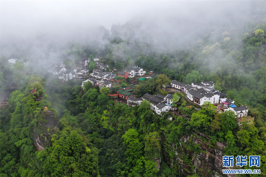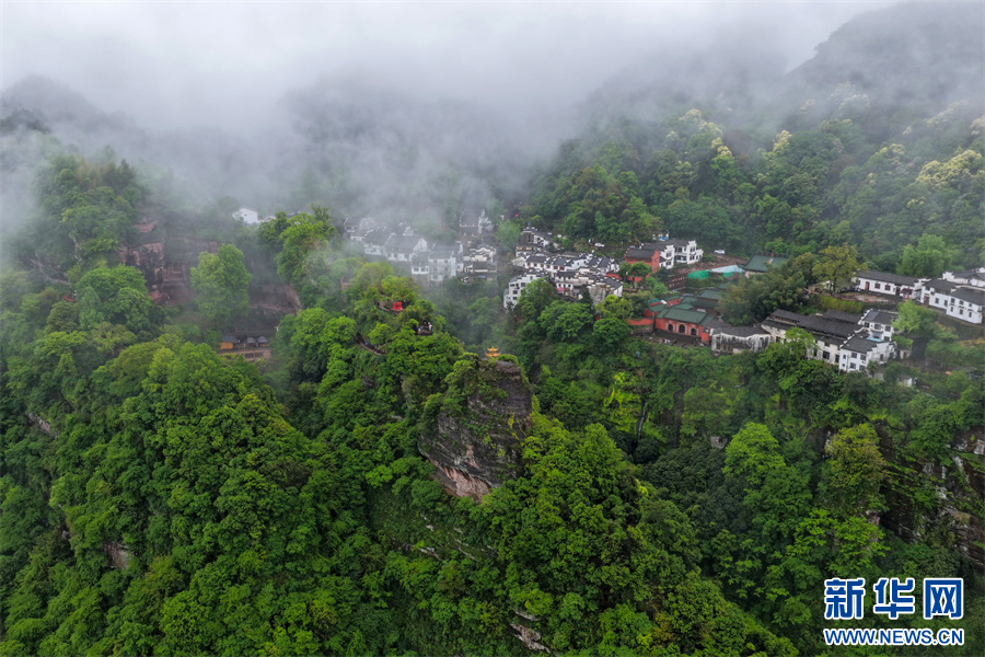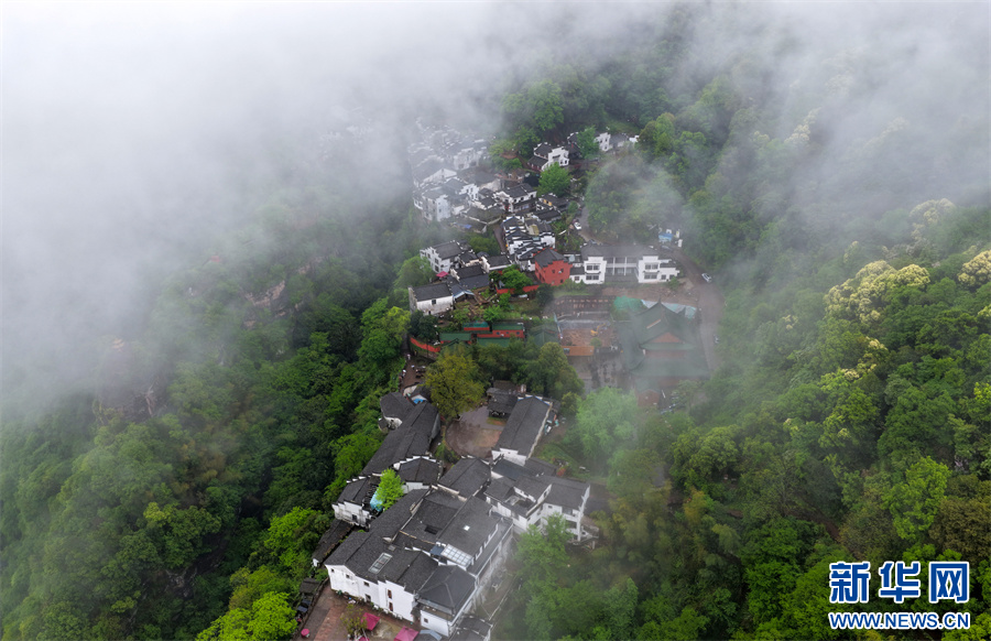 4月22日,在安徽省黄山市休宁县齐云山景区拍摄的雨后春色(无人机照片)。