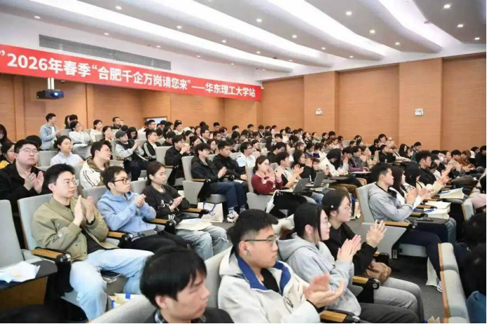 招聘会期间,合肥市在华东理工大学举行专场城市推介会,全方位介绍城市发展环境、人才安居政策、创新创业扶持举措等内容。“通过推介会,我对合肥有了更全面的认识,希望以后可以加入合肥这座科创名城。”推介会现场,控制工程专业的在读研究生王国振和同学们对合肥好感倍增,认为合肥发展前景广阔,是未来就业的理想选择。