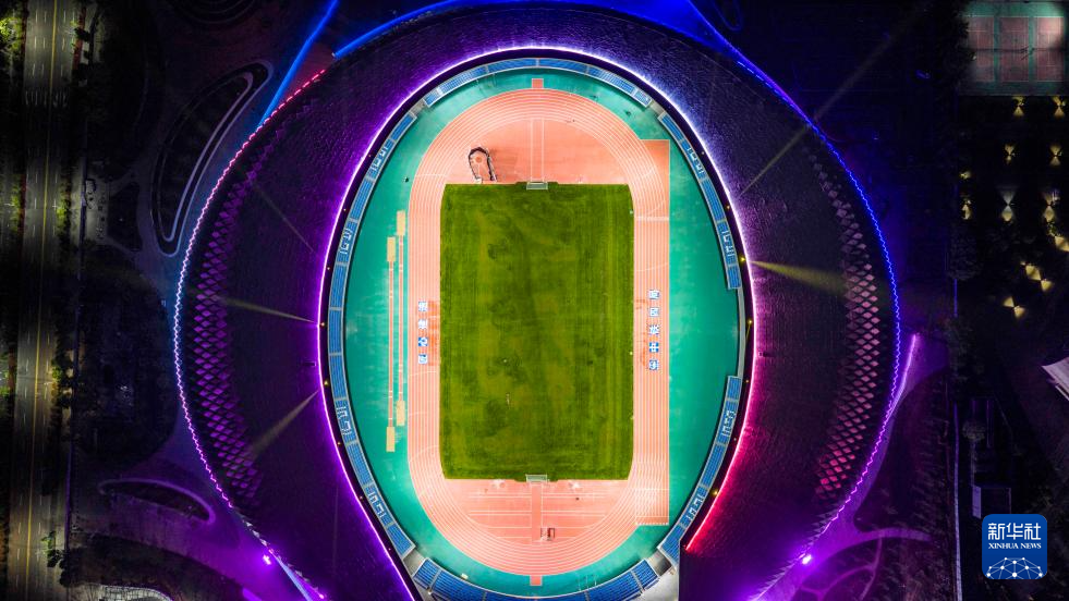 这是4月23日拍摄的宿州奥体中心体育场夜景(无人机照片)。