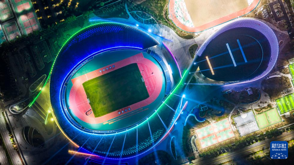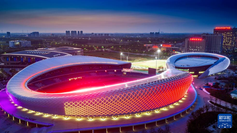 这是4月23日拍摄的宿州奥体中心项目夜景(无人机照片)。