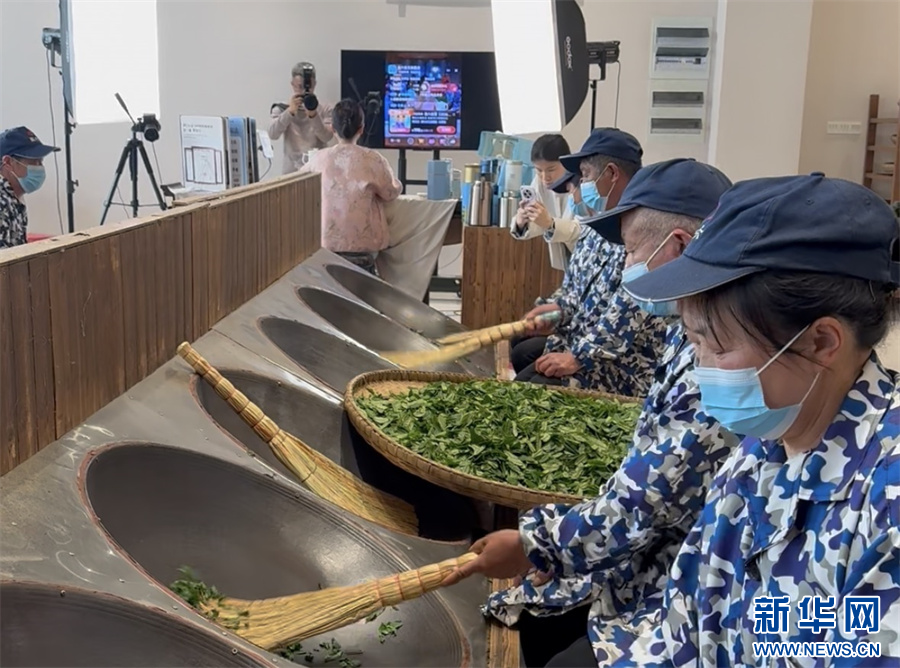 安徽省六安瓜片茶业股份有限公司还将直播间搬进了徽六非遗工坊。在现场,工人们采用传统手工艺制作六安瓜片成品茶。主播向网友和消费者介绍国家级非遗代表性项目绿茶制作技艺(六安瓜片)的独特魅力。