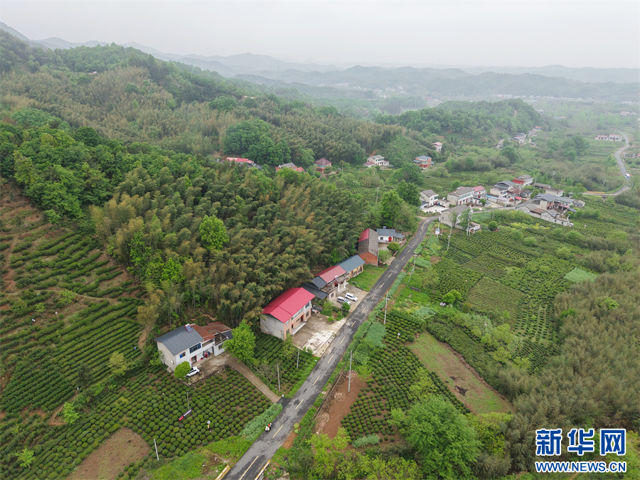 2026年4月14日,航拍六安瓜片核心产区之一的安徽省六安市裕安区独山镇双峰村詹冲茶园。新华网发(方好 摄)