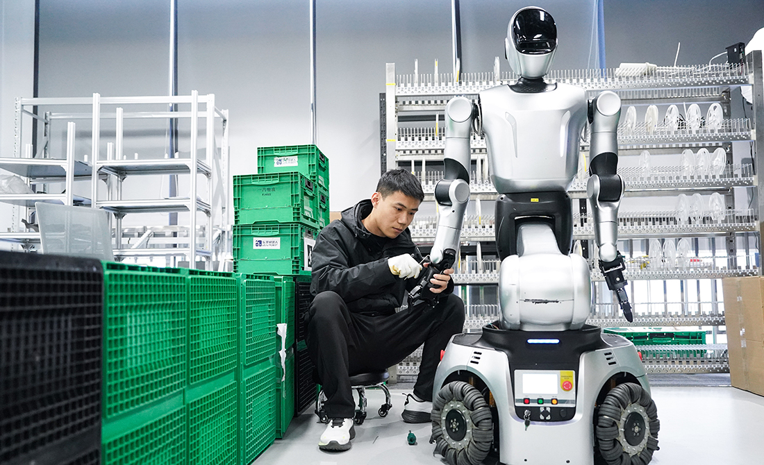 在芜湖埃夫特智能机器人股份有限公司的车间里,一台台工业机器人有条不紊地进行着出厂前的最后测试。而在合肥市包河区,合肥零次方机器人公司的研发人员在调试最新一代人形机器人,其首款产品轮臂机器人ZERITH-H1已应用在合肥新桥国际机场。