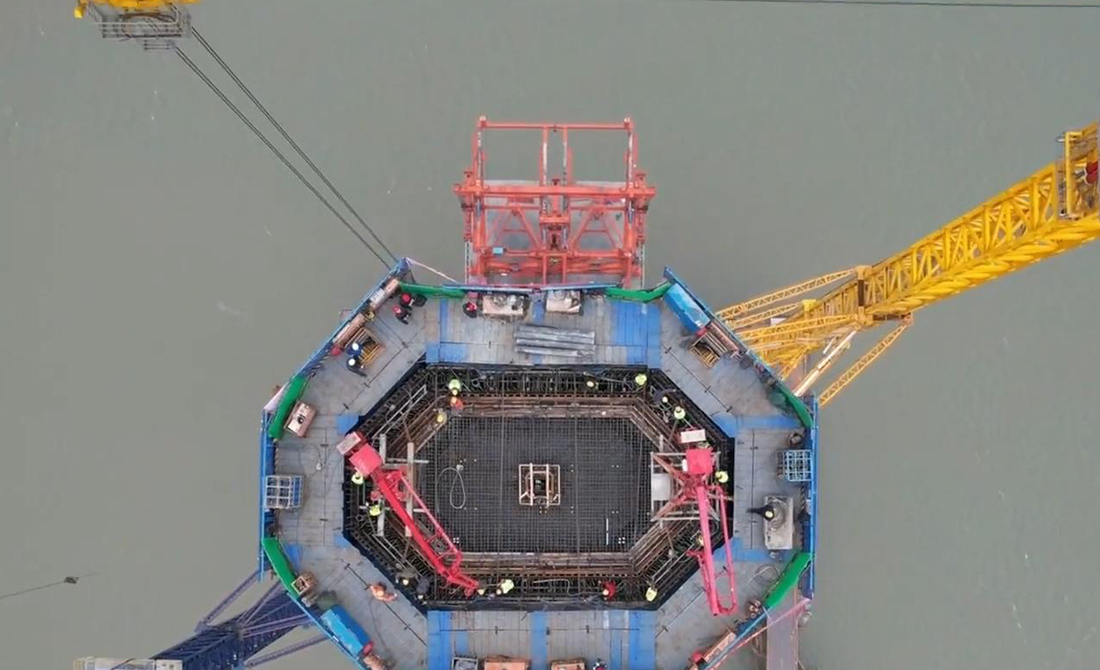 池州长江公铁大桥北主塔封顶
