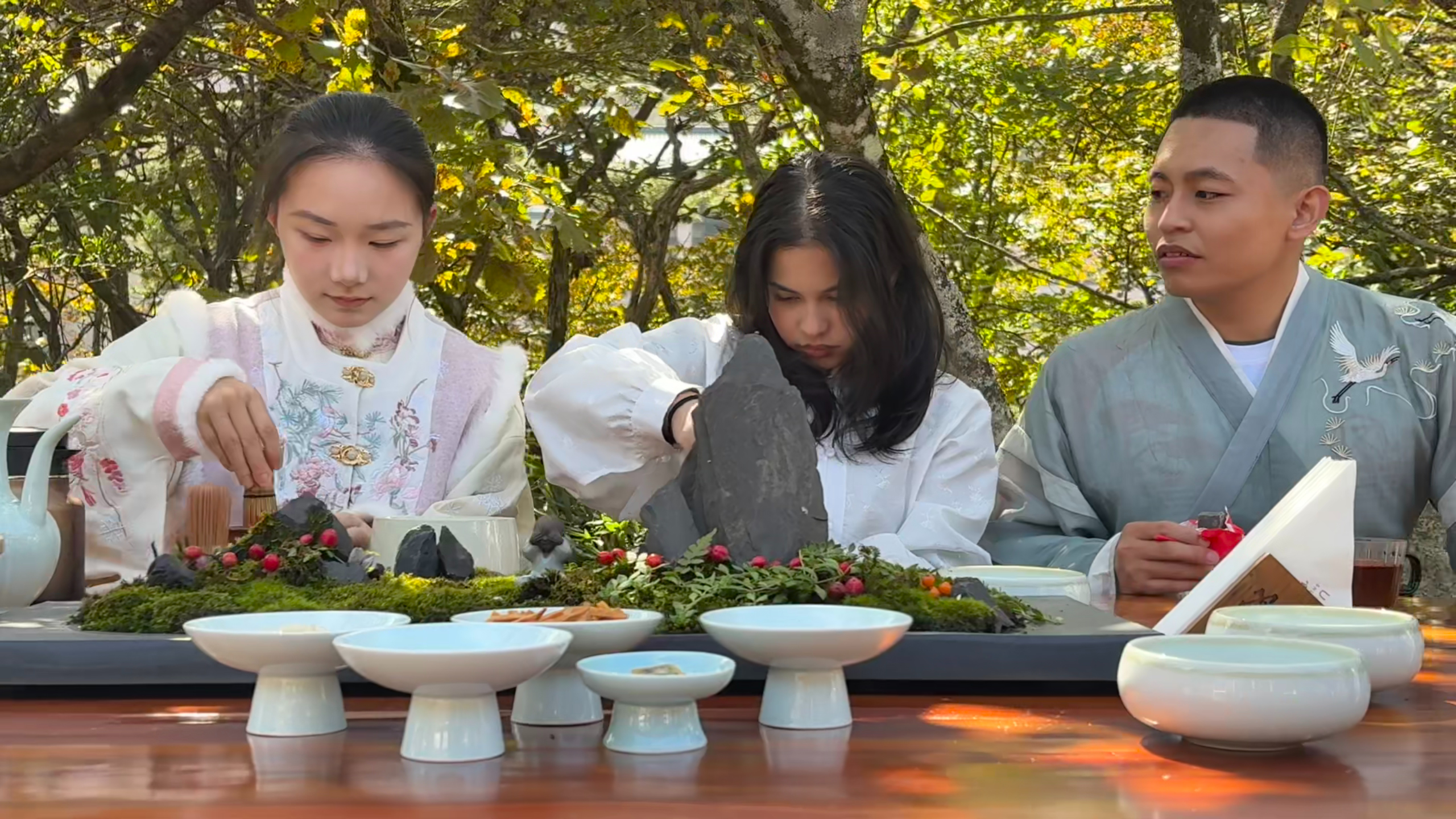 "在风景秀丽的黄山之巅,品茗、点茶、插花,是种什么样的体验。"