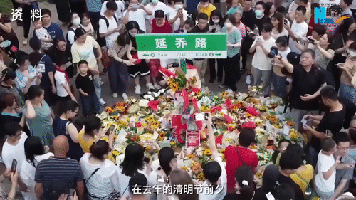 人们自发来到延乔路路牌下献花