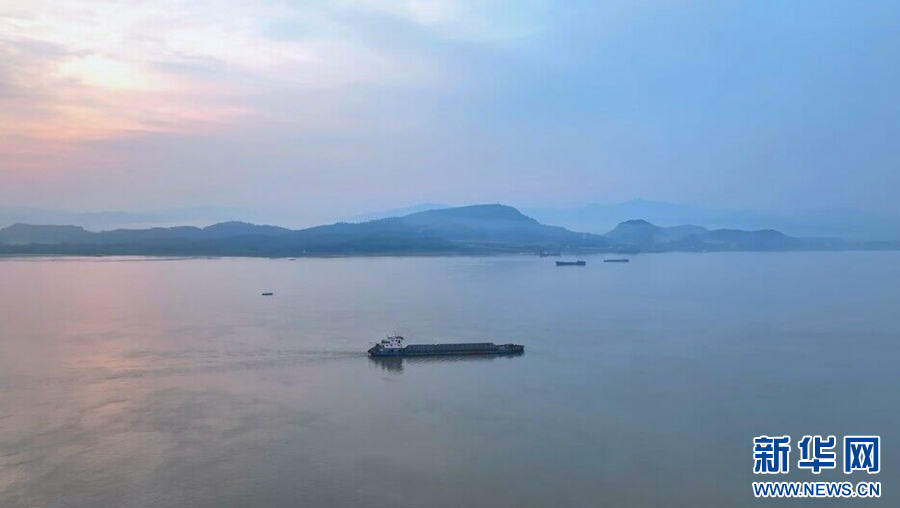 夕阳西下,在安徽省安庆市望江县境内,汇入长江的杨湾河、华阳河两岸葱茏。晚霞的余晖将天空染成了一片绯红,天地间弥漫着一股温暖而悠远的气息,彷佛在歌颂大河入江的壮丽之美。