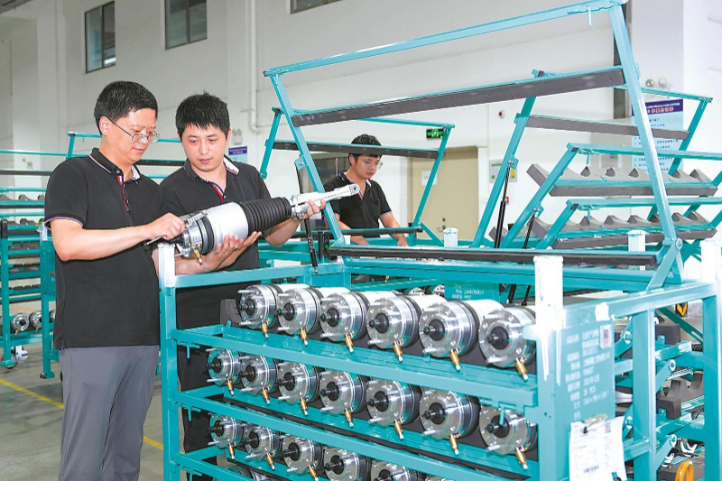 近日,在位于合肥经开区的上海保隆汽车科技(安徽)有限公司园区内,工人在检查新能源汽车空气悬架产品。本报记者 范柏文 摄